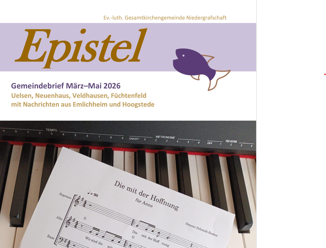 Home Willkommen auf den Seiten der ev.-luth. Kirchengemeinden der Niedergrafschaft von Emlichheim bis Füchtenfeld im Kirchenkreis: Emsland-Bentheim. Den neuesten Gemeindebrief können Sie hier lesen.